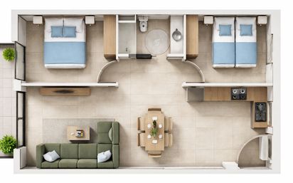 pis d'obra nova en edifici de 2 alçades, plantes baixes amb terrassa privada a nivell de carrer i terrassa privada a la coberta, primers pisos amb balcó a nivell de menjador i terrassa privada a la coberta. 2 habitacions, un bany i cuina-menjador en un sol ambient. disposen de plaça d'aparcament i traster. A partir de 350.000€