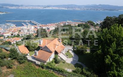En un enclave único con fabulosas vistas a Cangas y a la Ría de Vigo nos encontramos con esta espectacular vivienda construida en el año 1999 ,con una superficie aproximada de 436m2 y con una parcela completamente cerrada de 1.945m2. La propiedad se encuentra en un estado de conservación impecable. Se distribuye en tres alturas. Planta Sótano con garaje para dos coches, amplia zona de lavandería con baño y ducha y una bodega. Desde aquí podemos acceder por una escalera interior a la Planta Principal que dispone de distribuidor, despacho, salón, amplia cocina con zona de comedor, 1 aseo de cortesía y un amplio salón comedor con chimenea. Gran parte de las estancias de esta planta cuentan con acceso a una terraza con zona porche desde la que se pueden contemplar vistas a la ría y a la montaña. En la Planta Bajo Cubierta está ubicada la zona de noche, cuenta con 4 dormitorios con armarios empotrados y dos baños (el principal en suite con bañera, plato de ducha y un gran ventanal con vistas a la Ría) La vivienda se ha construido con excelentes calidades, cuenta con materiales nobles como roble macizo en toda la carpintería, persianas de seguridad... La parcela está ajardinada con diversa vegetación consolidada, dispone de árboles frutales (higuera, manzanos, ciruelos, kiwis, mirabel...), tiene riego automático. Existe una edificación como zona de barbacoa ideal para la celebración de cualquier evento. Si deseas más información o concertar una visita puedes llamarnos al teléfono 986422296 Rivera Real Estate. Carretera de Camposancos 75 - Vigo. Contamos con departamento de hipotecas y financiación, con el cual podrás conseguir las mejores condiciones del mercado. Ref. abc1125