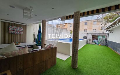 Presentamos esta magnífica vivienda adosada de 242 m² construidos, distribuida en tres cómodas plantas y diseñada para ofrecer amplitud, funcionalidad y confort en cada uno de sus espacios. Ubicada en una zona bien comunicada del sur de Tenerife, con fácil acceso a la Autopista Sur, esta propiedad destaca tanto por su excelente localización como por sus completas prestaciones. La vivienda ha sido completamente reformada y se encuentra actualmente alquilada con contrato en vigor hasta diciembre de 2026. Esto la convierte en una excelente oportunidad de inversión, con posibilidad de negociación en el precio en caso de adquirirla con el inquilino. En la planta principal encontramos un acogedor recibidor que da paso a un luminoso salón orientado hacia la fachada, un baño completo con plato de ducha y una cocina independiente totalmente equipada, con abundante espacio de almacenamiento y acceso directo a una terraza con agradables vistas a la piscina. La planta superior alberga tres dormitorios: un dormitorio principal de generosas dimensiones, un dormitorio doble y uno individual. Esta planta se completa con un amplio baño equipado con bañera y doble lavabo. Los techos altos aportan una notable sensación de amplitud y luminosidad en toda la estancia. En la planta inferior se dispone un dormitorio doble adicional, dos aseos, una práctica cocina auxiliar y un garaje privado con puerta manual. Desde esta planta se accede a la terraza principal, uno de los espacios más destacados de la propiedad, equipada con césped artificial y una espectacular piscina privada, perfecta para disfrutar del excelente clima de Tenerife durante todo el año. La vivienda se vende sin mobiliario ni electrodomésticos, ya que pertenecen al actual inquilino. Esta propiedad representa una opción ideal tanto como residencia familiar futura como para inversores que buscan una vivienda amplia con zonas exteriores privadas en una ubicación privilegiada. Algunas imágenes pueden haber sido mejoradas mediante inteligencia artificial con el objetivo de ofrecer una visión orientativa del potencial de la vivienda, sin que ello implique modificaciones estructurales reales. El plano facilitado es meramente orientativo y puede no reflejar con exactitud la distribución final del inmueble. No dude en contactar con nosotros para solicitar más información. Estaremos encantados de atenderle.