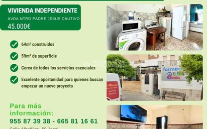 Vivienda de 64 m² construidos ubicada en la zona Avd. Ntro. Padre Jesús Cautivo, una zona tranquila y con buena conexión a servicios. La vivienda se distribuye en: Salón Cocina Salita 2 dormitorios Baño completo Patio delantero ideal para disfrutar del aire libre Perfecta para inversores, con gran potencial de rentabilidad tanto para alquiler como para reforma y revalorización. Una oportunidad difícil de encontrar en la zona. ¡Contacta con nosotros para más información o para concertar una visita!