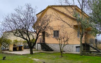 Chalet pareado en calle Sol 4, Ventas de Retamosa. Superficie construida de 186 m2 en parcela totalmente rectangular y plana de 440 m2. Distribuido en planta sótano, planta baja y primera planta. Sótano con leñera, chimenea y garaje. Planta baja con baño completo, salón-cocina, recibidor y terraza-porche de acceso. Planta primera con 3 dormitorios y baño completo. Ventanas con doble cristal y persianas de aluminio. Calefacción por estufa de leña. Agua caliente por termo eléctrico.