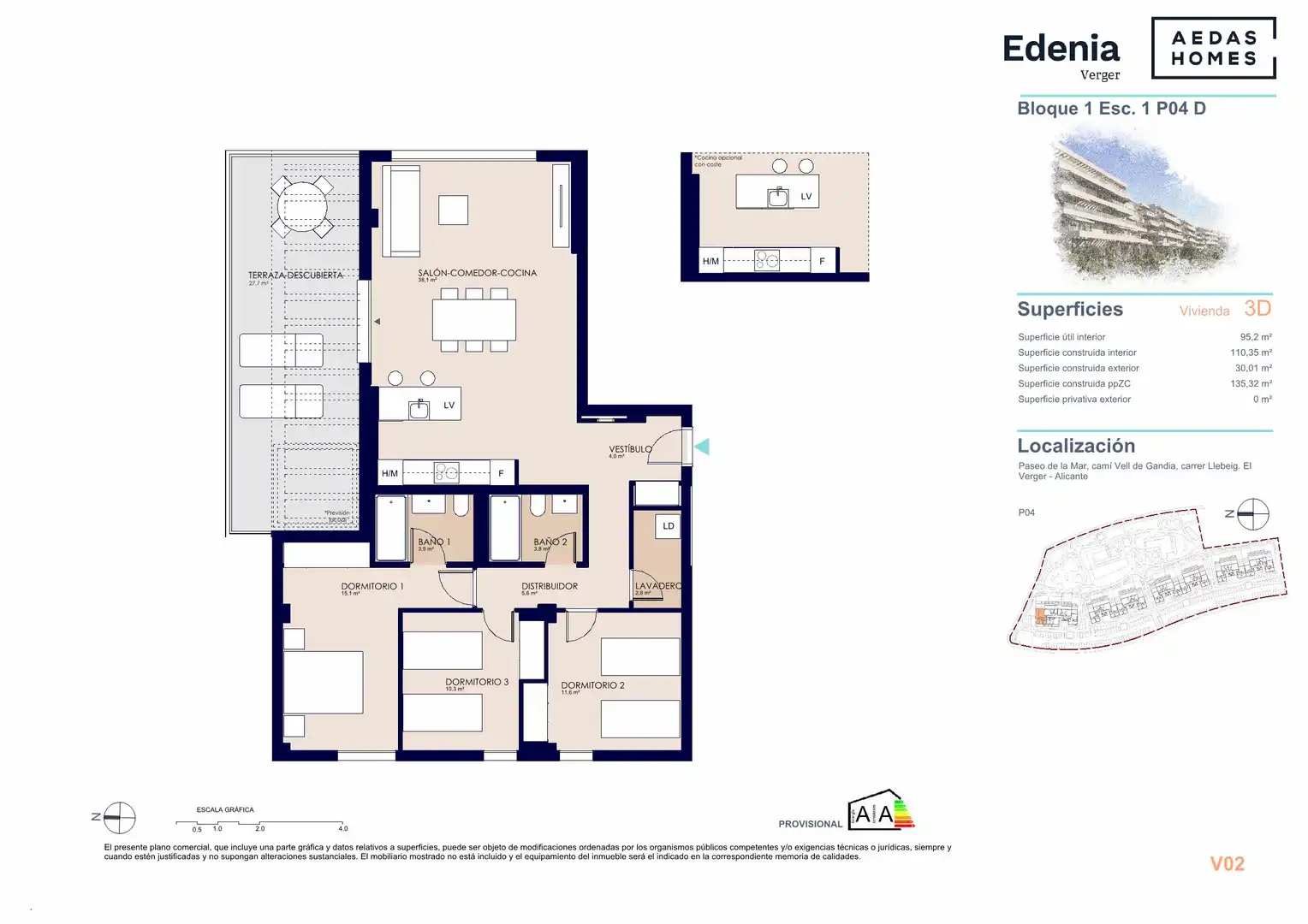 “Las imágenes mostradas son una aproximación lo más fiel posible del resultado final del inmueble proyectado, pudiendo darse modificaciones derivadas de exigencias técnicas o jurídicas, siempre que estén justificadas y no supongan una alteración sustancial del objeto, calidad de los materiales y/o precio. El mobiliario mostrado no está incluido, siendo el equipamiento del inmueble el indicado en la memoria de calidades”.