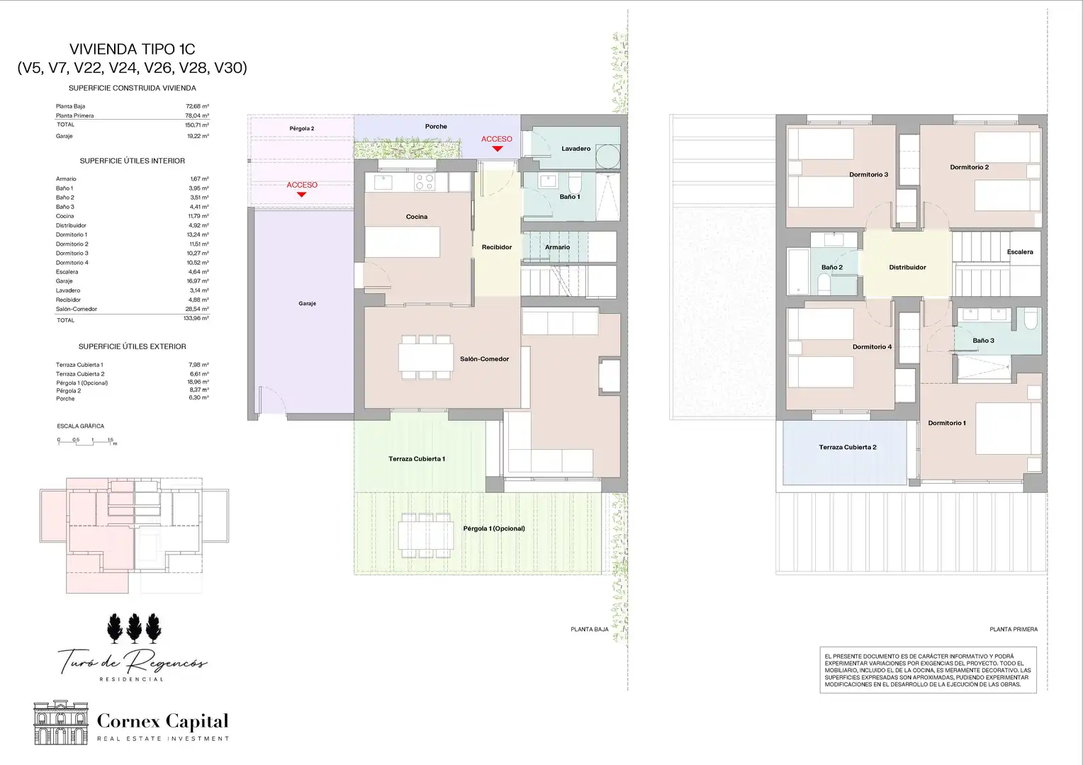 • 170m2 en 2 plantas, con 4 dormitorios y 3 baños