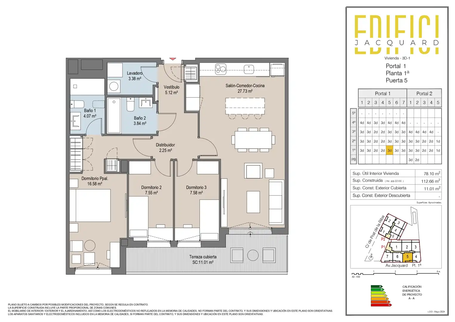 L´EDIFICI JACQUARD, es troba ubicat al barri de Vallparadís de Terrassa, amb façana a l´avinguda Jacquard i al carrer Prat de la Riba. És una promoció d´habitatges projectada pensant en la teva comoditat, amb una estètica d´avantguarda, integrada a l´entorn i amb espais pensats perquè gaudeixis plenament de la teva llar. La promoció consta de 2 escales que comparteixen zona comunitària amb un total de 44 habitatges d´1, 2, 3 i 4 dormitoris. Cada habitatge gaudirà d´un balcó o terrassa, i també tenen la possibilitat de tenir plaça d´aparcament i traster. L´Edifici té una Qualificació Energètica A, el que permet una reducció significativa de la seva demanda energètica així com una disminució en les emissions de CO2 que es generin. La seva ubicació, la qualitat de materials i acabats, les cuidades zones comunes amb piscina per a gaudir en família així com la possibilitat de personalització dels mateixos fan d´EDIFICI JACQUARD una promoció exclusiva a la seva zona. Lliurament 3r Trimestre 2.026.