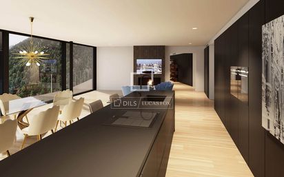 Lucas Fox presenta Ordino Mountain Residential Resort una exclusiva promoción de obra nueva en la parroquia de Ordino, una tranquila zona residencial de Andorra, con impresionantes vistas a las montañas en pleno entorno natural. Esta promoción surge de la idea de reinterpretar el concepto de cabaña de madera y trasladarlo al proyecto residencial. Para ello, se emplea una combinación de materiales naturales, como la madera o la piedra, con materiales contemporáneos. Así, se logra una fusión de la arquitectura tradicional andorrana con un diseño innovador. Con esta idea, se ha configurado este apartamento dúplex que cuenta con grandes cristaleras de suelo a techo que permiten la entrada de abundante luz natural en los distintos espacios y ofrecen impresionantes vistas al entorno natural. Las vivienda cuenta con un diseño moderno, con mobiliario minimalista, en colores neutros. Este apartamento de 374 m² se distribuye en tres plantas y ofrece todo tipo de estancias, además de tres amplios dormitorios. En la primera planta, encontramos la zona de noche, con dos dormitorios dobles con sendos baños privados y el impresionante dormitorio principal con su baño privado y vestidor. Cada uno de los dormitorios goza de salida a la magnífica terraza con vistas a las montañas. Esta planta Esta planta se completa además, con una zona de lavandería. La planta entresuelo, ofrece una espaciosa zona de despacho propio, con toda la privacidad posible. Finalmente, la planta superior dispone la zona de día con un salón-comedor con la cocina abierta en una estancia diáfana,así como un aseo de cortesía y trastero para mayor espacio de almacenamiento. Esta planta también cuenta con salida a una terraza. La vivienda goza de certificación BREEAM, una certificación que reconoce los esfuerzos de sostenibilidad en términos de eficiencia energética y de construcción respetuosa con el entorno. Entre sus calidades, podemos destacar la puerta acorazada, puertas lacadas en blanco, pavimentos de madera apto para suelo radiante en las estancias principales y de gres porcelánico en las zonas húmedas y la cocina, chimenea giratoria de Dexofocus y armarios empotrados en los dormitorios. Para mayor confort, incluye carpintería de aluminio con rotura de puente térmico con triple acristalamiento y capa bajo-emisiva de Saint-Gobain, sistema de climatización con suelo radiante y refrescante, apoyado con un sistema de fancoils para la refrigeración; todo ello alimentado con un sistema de bombas de calor geotérmicas. Las cocinas vienen totalmente equipadas con mobiliario Santos acabado blanco mate, encimera Neolith y electrodomésticos de la marca Gaggenau. Los baños también vienen totalmente equipados, con sanitarios de la marca Villeroy & Bosch, grifería Hansgrohe y encimera de Neolith. La promoción ofrece un exclusivo jardín a varios niveles, con zonas de descanso, zonas ajardinas, zonas de paso para los peatones e iluminación led. Además, ofrece un club social con una sala común con chimenea, aparcamiento con doble acceso, trasteros y ascensores. Finalmente, ofrece una zona de spa totalmente equipada con varias duchas, saunas, piscinas con sistemas de masajes, camas de masajes y un banco tipo jacuzzi. Para mayor seguridad, la promoción dispone de control de acceso con vigilante se seguridad y monitorización de zonas comunes. Póngase en contacto para más información.