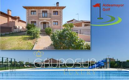 VIDEO INFORMATIVO: para verlo busque en youtube GRUPOSUR 10025. Les presento un fantástico chalet independiente, con piscinas y zonas comunitarias en la urbanización Aldeamayor Golf, un complejo residencial situado a 20 minutos del centro de Valladolid por autovía. Una bonita vivienda construida en el año 2008 con materiales de primera calidad en el año 2004, de 390 m² construidos con salón, cocina, 6 dormitorios, 4 baños, bodega y garaje, que forman un total de 360 m² útiles, distribuidos en 4 plantas. Al entrar en la vivienda, el distribuidor de la planta baja da acceso a la cocina y a un baño a la derecha, a un dormitorio a la izquierda y al salón de frente. La cocina es muy amplia y está completamente equipada con mobiliario lacado en blanco, encimera de madera y electrodomésticos. Tiene una puerta que da acceso al exterior. Junto al baño de esta planta, de frente desde la entrada se encuentra el salón, que tiene forma rectangular que favorece la decoración en varios ambientes. Desde el salón se accede al porche de la vivienda y al jardín. En total la parcela tiene una superficie de 755 m². En el jardín encontramos un Palomar y también una zona vallada para los animales domésticos. También encontramos varios árboles frutales. En la planta primera de la vivienda encontramos 4 grandes dormitorios, uno de ellos en suite, y dos baños uno de ellos dentro de la suite. En la planta ático de la vivienda encontramos un bonito dormitorio de casi 100 m² con techo abuhardillado. En el distribuidor de la planta baja una puerta da acceso a las escaleras que nos conducen a la planta sótano de la vivienda en la que encontramos la bodega, un baño y el garaje para 2 coches. Este precioso chalet tiene calefacción y refrigeración de aerotermia por suelo radiante y cuenta con placas solares. Las ventanas tienen carpintería exterior de PVC con cristalería climalit y los suelos son de gres. El residencial ofrece a sus propietarios fantásticas zonas comunes, con club social con cafetería y restaurante, piscinas, zonas deportivas y zonas infantiles. Los gastos de comunidad son de 18 euros mensuales. Si desea más información o si desea solicitar una cita para visitar la vivienda no dude en ponerse en contacto conmigo. Me llamo Ana. Muchas gracias por su interés.