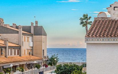 Bungalow con terrazas piscina comunitaria y vistas al mar, de tres dormitorios y 2 baños, a pocos metros de la playa en Tamarit. Bonito bungalow distribuido en tres plantas dentro de una exclusiva urbanización privada en Tamarit, situado a solo unos pasos del mar. La vivienda, se encuentra en muy buen estado y de conservación. En la planta baja te encuentras con una terraza, con un acceso al salón comedor con chimenea para hacer un ambiente mas confortable, una cocina independiente totalmente equipada con acceso a un patio, y un baños completo. La vivienda cuenta con 3 dormitorios, el dormitorio principal con terraza con vistas al mar y un baño completo en suite, un segundo dormitorio simple, y una guardilla que actualmente es una habitación, con dos estupendas terrazas, una con vistas la mar. Todos los dormitorios poseen armarios empotrados. La urbanización ofrece una piscina comunitaria, con una piscina grande y una para los mas pequeños ideal para disfrutar de un entorno tranquilo y familiar. Una ocasión excepcional para vivir junto al mar en una de las zonas más privilegiadas de la Costa Blanca.