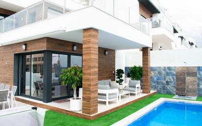 VILLA EXCLUSIVA (193 m2) EN LA ZONA DE VISTABELLA GOLF. Presentamos esta exclusiva villa independiente ubicada en la prestigiosa zona de Vistabella Golf, en la urbanización Los Naranjos, Orihuela. Esta propiedad única ha sido completamente renovada a partir de una obra nueva de 2023, incorporando acabados de alta gama, una nueva fachada contemporánea y elegantes suelos exteriores renovados que realzan su estilo moderno y sofisticado. Con una parcela privada con aparcamiento para hasta tres coches, esta vivienda se distribuye en dos plantas. En la planta baja, encontramos una moderna cocina americana, un amplio salón, un lavadero independiente y dos dormitorios dobles, uno con baño justo enfrente y el otro con baño en suite y vestidor. En la primera planta, el dormitorio principal destaca por su amplitud, su baño en suite con vestidor y una terraza privada, ideal para relajarse con vistas despejadas. En el exterior, la villa ofrece una espectacular piscina privada de agua salada, césped artificial y una amplia terraza en la planta superior equipada con mesa de comedor y cocina exterior, ideal para reuniones al aire libre. También cuenta con paneles solares para una eficiencia energética óptima y un trastero para almacenamiento adicional. Una vivienda ubicada en una zona tranquila y segura, muy cerca de campos de golf, naturaleza y todos los servicios necesarios. Una propiedad de lujo en la Costa Blanca que combina diseño, tecnología y confort. ¡Contáctenos hoy mismo para visitar su nuevo hogar! Nota: Los muebles, la lavadora y las plantas no están incluidos en el precio, pero se pueden conservar previo acuerdo y precio negociable con el propietario.