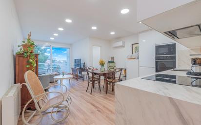 L’habitatge ofereix una distribució molt còmoda i funcional. Disposa de tres habitacions, ideals tant per a famílies com per a qui necessiti espai de treball o d’estudi a casa. La cuina oberta al menjador crea una zona de dia àmplia, moderna i molt agradable, perfecta per compartir moments amb família o amics.