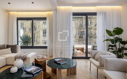 Esta excepcional vivienda de 179 m², completamente reformada con materiales de primerísima calidad, fusiona la solidez arquitectónica de mediados del siglo XX con un diseño actual, funcional y atemporal. Su distribución, estudiada al detalle, diferencia con precisión la zona social de la zona privada, lo que garantiza comodidad y privacidad en cada rincón. La zona de día se abre con un elegante recibidor que conduce a un amplio salón comedor de generosas proporciones, presidido por una chimenea y con acceso directo a una encantadora terraza de 8,5 m², perfecta para disfrutar del clima mediterráneo. La cocina independiente, equipada con electrodomésticos de alta gama, se complementa con un práctico comedor diario y un lavadero independiente que aporta funcionalidad al conjunto. En la zona de noche, la privacidad es absoluta. Dos dormitorios dobles simétricos, ambos con baño en suite y amplios armarios empotrados, ofrecen un ambiente de descanso elegante y sereno. La suite principal destaca por su amplitud, abundante luz natural y salida a una terraza privada que invita a la relajación. Situado en una finca de 1964, el inmueble conserva los rasgos característicos de una arquitectura sólida y bien ejecutada: techos altos, espacios amplios y una distribución lógica que potencia la sensación de confort. Las grandes ventanas inundan de luz cada estancia, lo que acentúa la calidad de los materiales y la armonía del diseño. El edificio cuenta con servicio de portería y ha superado satisfactoriamente la Inspección Técnica del Edificio (ITE), lo que garantiza tranquilidad y valor a largo plazo. Vivir en Enric Granados es disfrutar de la esencia más auténtica de Barcelona. Esta elegante calle arbolada combina la calma residencial con una vibrante oferta gastronómica, cultural y comercial. Una ubicación inmejorable que permite vivir con estilo, comodidad y la sofisticación que distingue al Eixample barcelonés.