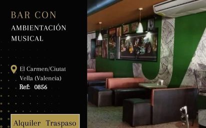 0856 – BAR CON AMBIENTACIÓN MUSICAL EN EL CARMEN / CIUTAT VELLA *Fotos ficticias para preservar la privacidad del cliente UBICACIÓN PRIME EN ZONA TURÍSTICA BUENA FACTURACIÓN CON GRAN POTENCIAL DE CRECIMIENTO AMBIENTACIÓN MUSICAL HASTA 80 dB(A) LOCAL HISTÓRICO CON AMPLIA TRAYECTORIA VALENCIA SERVICE presenta una magnífica oportunidad de traspaso en pleno corazón de El Carmen, dentro de Ciutat Vella, una de las zonas con mayor encanto, historia y atractivo turístico de Valencia. El barrio de El Carmen, situado en el casco histórico, se caracteriza por sus calles peatonales llenas de personalidad, edificios emblemáticos, plazas con ambiente y una intensa oferta cultural y gastronómica. Se trata de una ubicación con flujo constante de público local y turistas durante todo el año. Local histórico, con muchos años de actividad bajo la misma propiedad y una trayectoria consolidada. Dispone de buena facturación para un negocio enfocado principalmente al horario nocturno. El establecimiento se encuentra completamente reformado y totalmente equipado, listo para entrar a trabajar desde el primer momento, sin necesidad de inversión adicional. Excelente potencial para desarrollar un concepto de cóctel bar. Espacio adecuado para eventos privados y celebraciones. Ideal para pareja emprendedora, socios profesionales o franquicias que deseen implantarse en una ubicación estratégica en Valencia. DATOS DEL LOCAL: Superficie: 75 m2 Aforo: 60 personas Terraza: no dispone Ambientación musical: hasta 80 dB(A) Alquiler: 1.020 € + impuestos Traspaso: 90.000 € Fianza: dos mensualidades Posible actualización del 20 % de la renta, según el art. 32 de la LAU Gastos de comunidad: a cargo del arrendatario IBI: a cargo del arrendatario Aviso: La información de este anuncio puede ser modificada o retirada sin previo aviso. Documento informativo y no contractual. Los datos han sido facilitados por terceros y pueden contener errores. El precio no incluye los honorarios de la inmobiliaria. El importe del traspaso incluye la transmisión de las licencias de actividad, así como todas las instalaciones, mobiliario y equipamiento existentes. VALENCIA SERVICE te acompaña con su SERVICIO PREMIUM y te asesora en todas las fases del proceso con total transparencia: Acceso a toda la información y documentación Asesoramiento integral Verificación y cambio de titularidad de la licencia Equipos profesionales a tu disposición Una gestión 360°. Estamos contigo en cada paso. ¡Consulta sin compromiso!