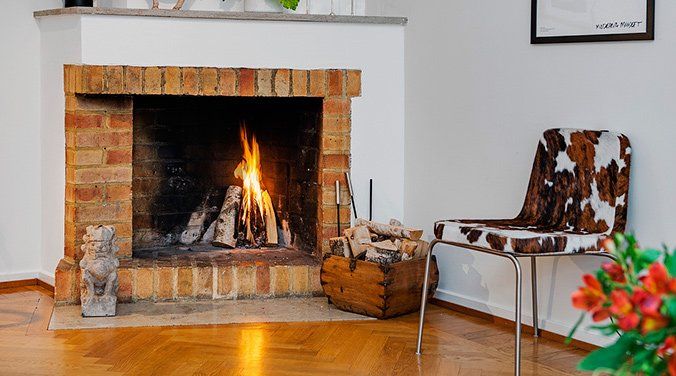 Si hay chimenea en casa, ahora es el momento de limpiarla y asegurarse de que funcione cuando llegue el frío. Un cesto lleno de leña, al lado de la chimenea, dará a cualquier salón un toque más acogedor