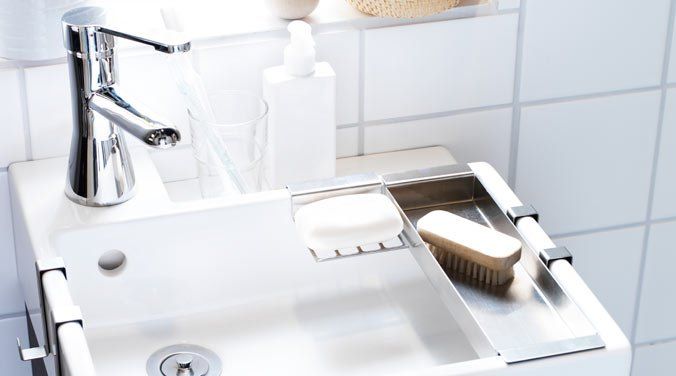 Rinconeras de pared y bandejas de madera o metal, fijas o adhesivas, terminan siendo de gran utilidad a la hora de dejar el gel, champú, mascarillas, esponjas, cepillos y otros elementos imprescindibles para el aseo diario.
